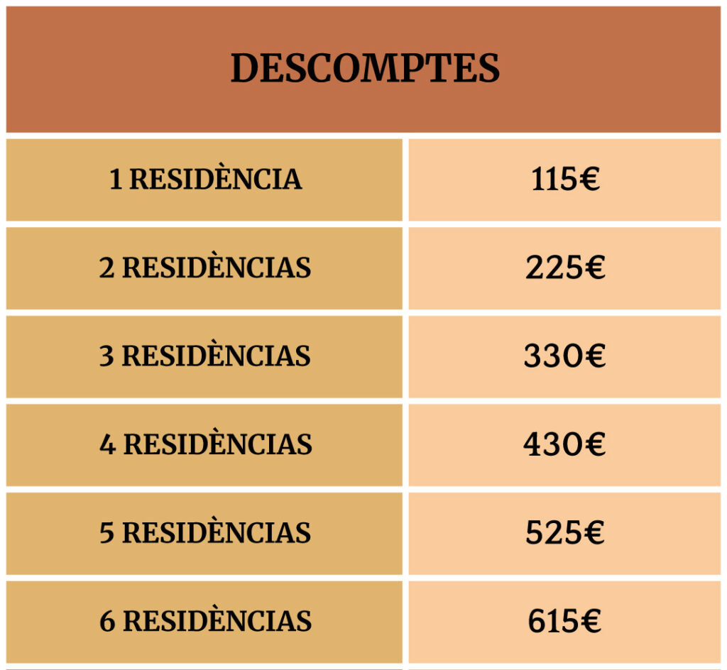 Tingues en compte que, pel que fa a les residències, al final del primer dia tindràs l’opció de canviar de nivell si cal, segons la disponibilitat de la classe prevista. Les places són limitades.