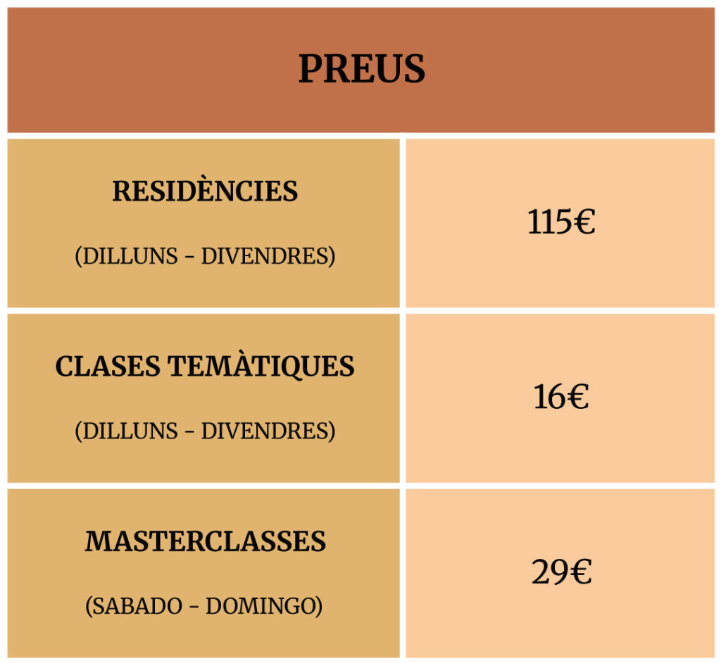 RESIDÈNCIES | DE DILLUNS A DIVENDRES | 21-25 DE JULIOL | |||||